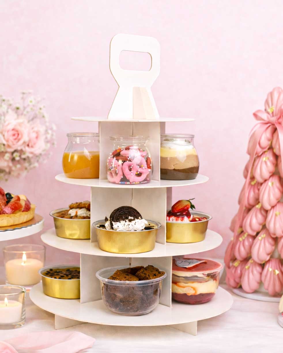 An elegant 12 Dessert Tower curated for indulgence and romance. Featuring our Mini Cheese Cakes, Mini brownie bites, Chocolate-coated Pretzels, assorted Mousse cups, Red velvet cake trifle, Apple crumble & Whipped Custard Cream sauce & Coated peanuts. Beautifully styled. Perfect for Valentine’s day gifting, celebrations, and luxury dessert lovers.