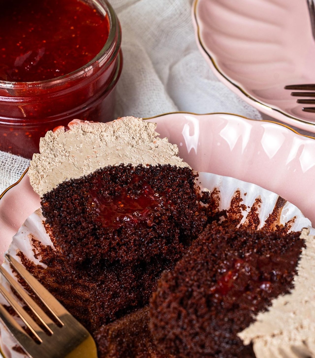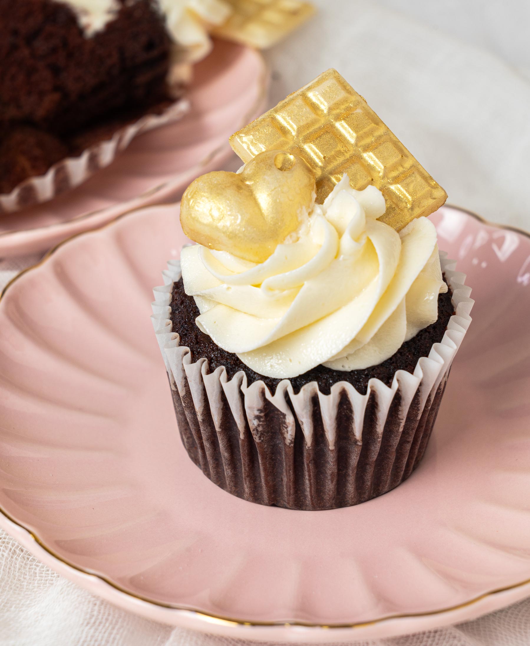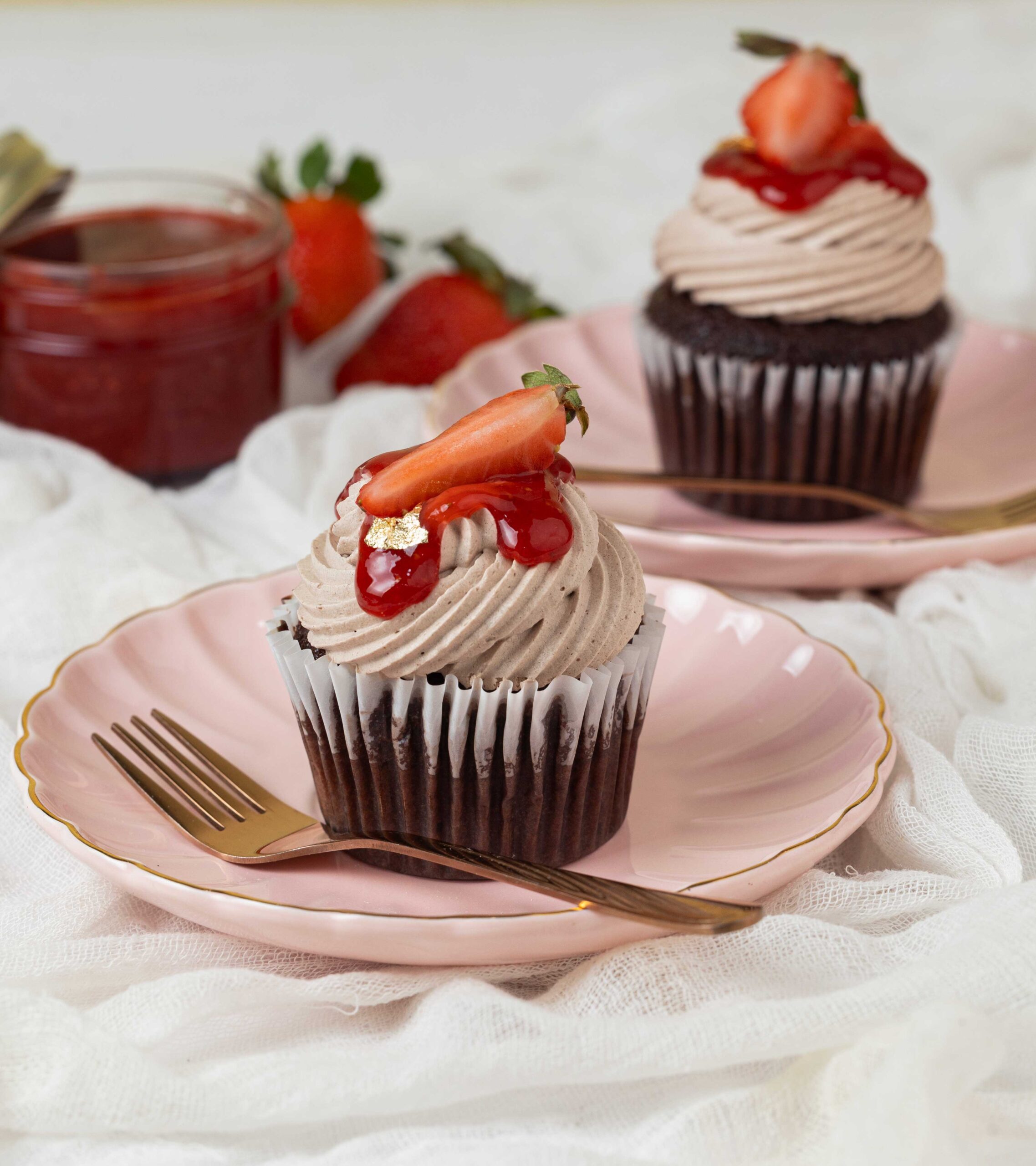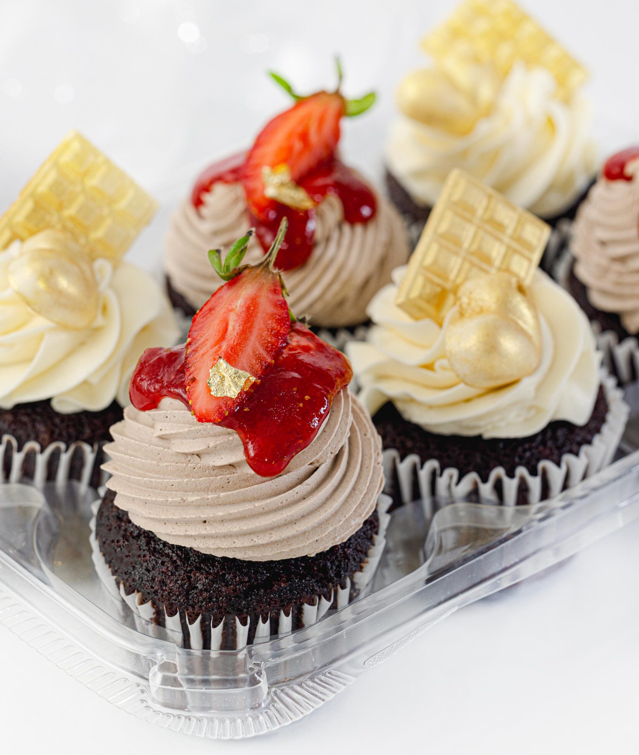 Creamy Valentine cupcakes made with high-quality & fresh ingredients. Filled with home-made jam and cheese filling. Topped with Fresh strawberries and white chocolate