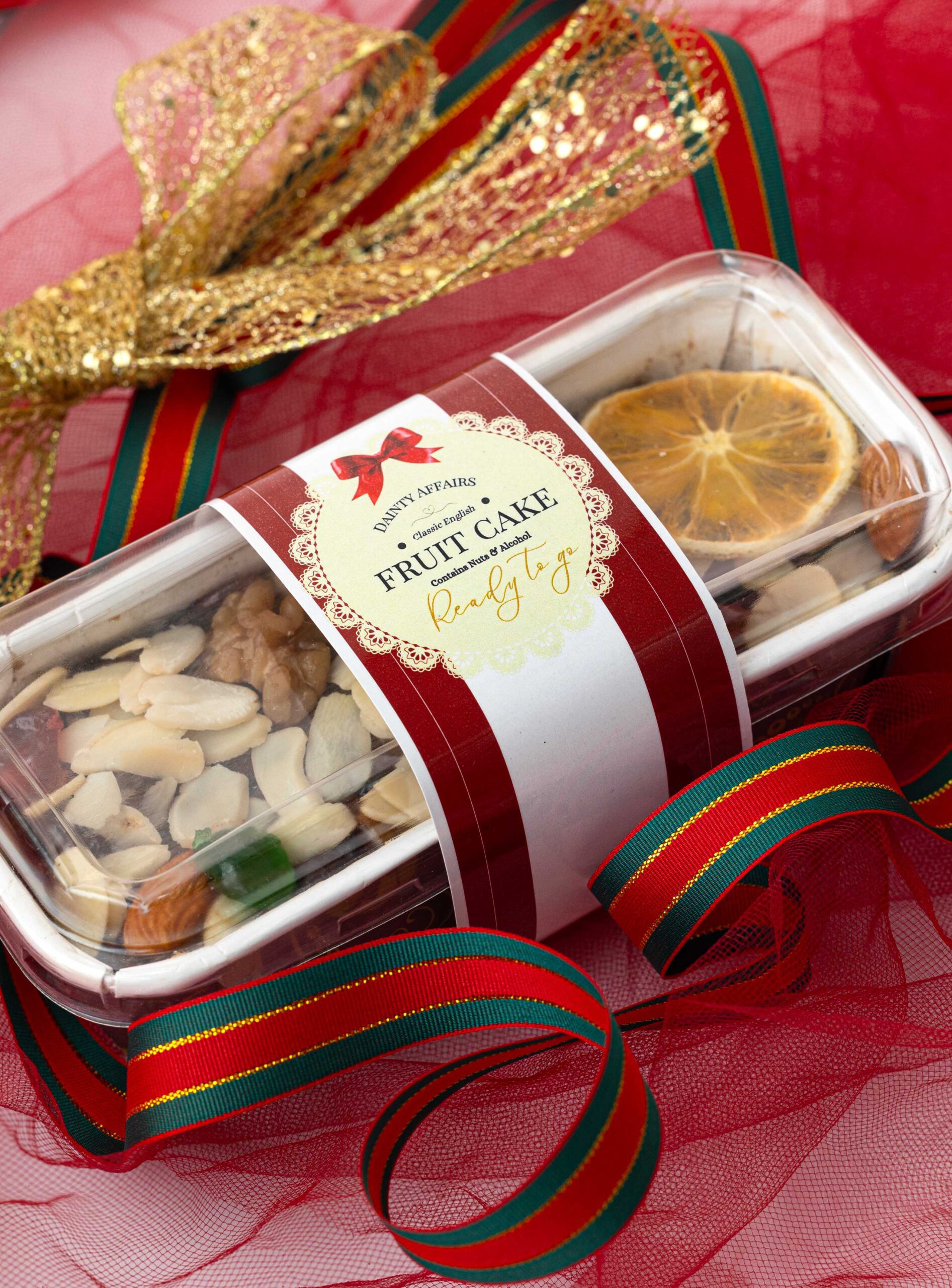 Very rich, moist and fruity with a very sophisticated taste and a distinctive fragrance. Generously garnished with toasted Walnuts, Whole Almond Nuts & Almond Flakes.