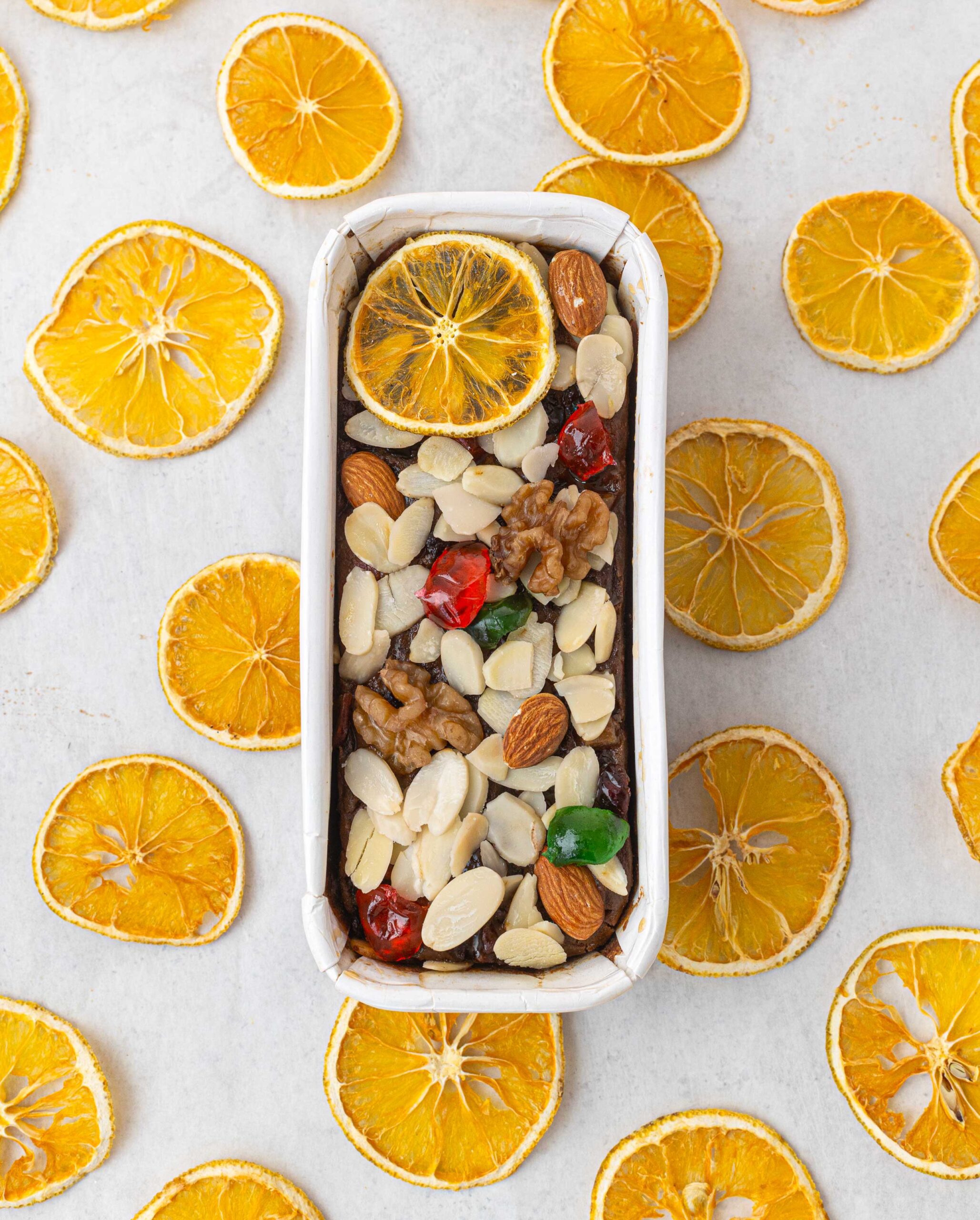 A delicious rich and moist fruit cake made with juicy sultanas, raisins, currants, candied cherries, tangy orange, lemon and spices. Generously garnished with toasted Walnuts, Whole Almond Nuts & Almond Flakes.